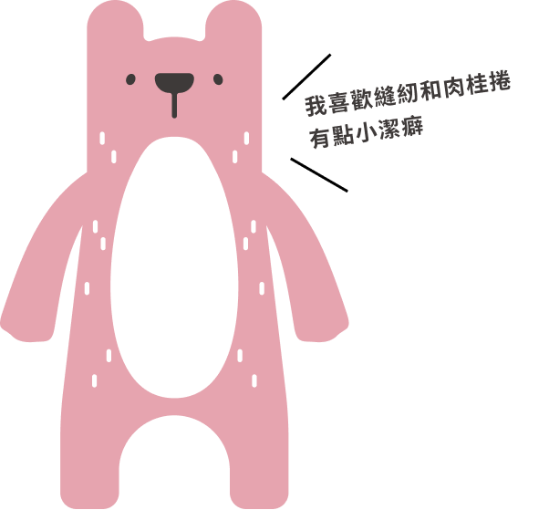 粉紅色的大雄,雄性,與外表粗獷的形象不同,喜歡留意各種小細節,爽眼總是堅定地望著目標,隨侍準備往前衝。